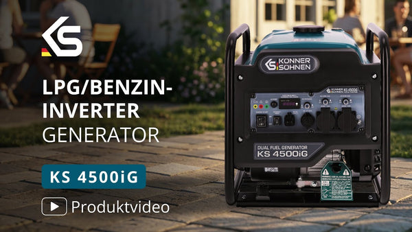 | Ausrüstung | Generator, Verpackung, Bedienungsanleitung, Zündkerzenschlüssel, PH2 Schraubendreher 6,0 mm, 1,5 m Gasschlauch, Druckminderer, Nulldruckregler, Zubehörtasche |