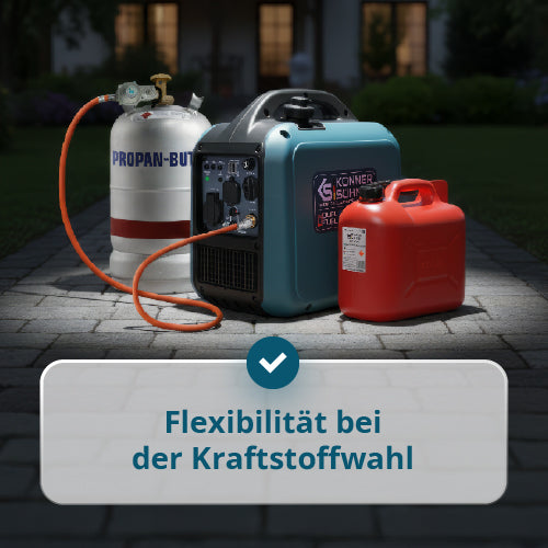 • Flexibilität bei der Kraftstoffwahl: Benzin oder Gas, spart Kosten