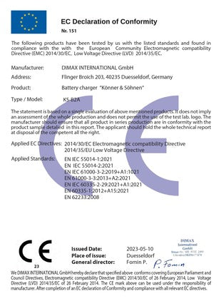 En 2016, los productos de Könner & Söhnen® fueron reconocidos como 'PRODUCTO DEL AÑO' basándose en el factor de relación calidad-precio. La marca 'Könner & Söhnen®' ha ocupado su nicho en la franja de precio medio, ofreciendo al comprador productos de alta calidad con todos los certificados europeos a un precio asequible.