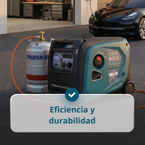 • Compatible con dos tipos de combustible (gasolina/GLP) – el generador puede funcionar tanto con gasolina como con GLP (propano, butano y sus mezclas). Esto permite cambiar a un gas más económico y duradero después del arranque.