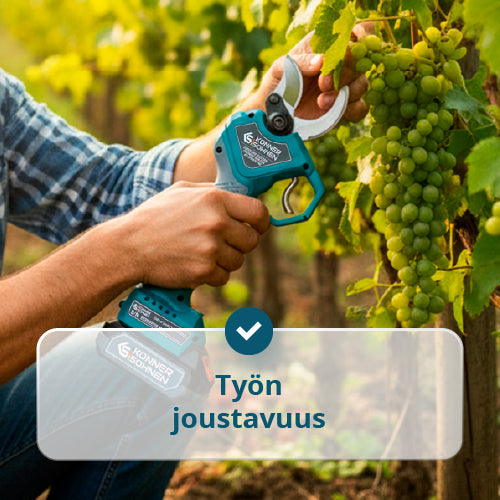 • Työskentelyn joustavuus — kaksi terän avautumisleveyttä (20/40 mm) mahdollistavat säädön eri oksien halkaisijoille, säästäen aikaa ja akun latausta.