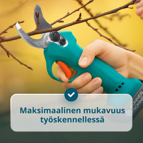 • Tehokas työskentely eri oksien kanssa – kolme terän avausvaihtoehtoa (15, 25, 32 mm) mahdollistavat nopean säädön mihin tahansa paksuuteen, säästäen aikaa ja vähentäen energiankulutusta.