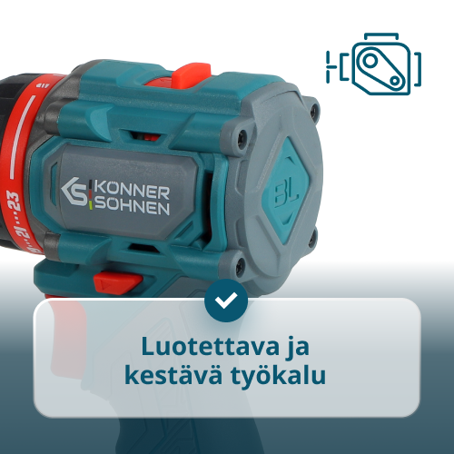 • Reliable and durable tool – the drill is equipped with a brushless motor that ensures long-lasting performance, stable power, and less heating during operation, while the reinforced metal gearbox housing protects the internal mechanisms from overload.