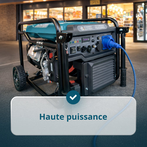 • Mobilité et facilité de transport — Les roues et les poignées permettent de déplacer facilement le groupe électrogène sans effort physique.