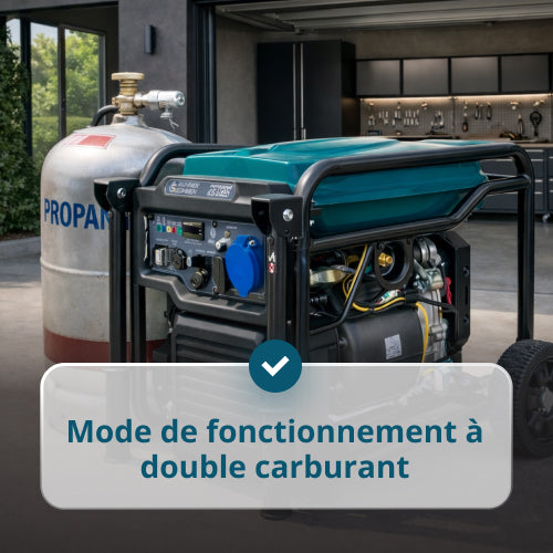 • La possibilité de fonctionner avec de l'essence et du gaz offre une flexibilité maximale d'utilisation, vous pouvez choisir le carburant le plus disponible ou le plus avantageux, réduire les coûts d'exploitation et maintenir l'approvisionnement en électricité même en cas de disponibilité limitée de l'un des carburants.