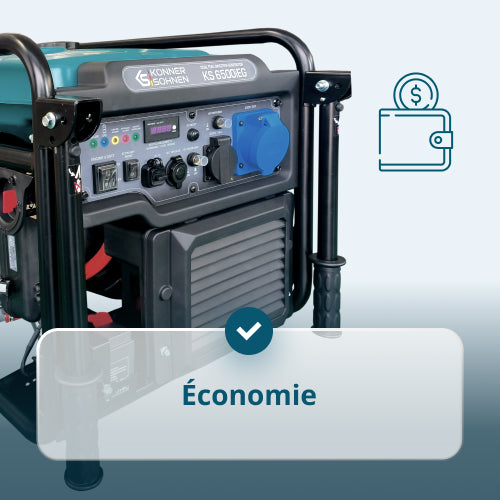 • Économie — Grâce au mode économique, le groupe électrogène réduit la consommation de carburant à faible charge, ce qui permet d'économiser sur les coûts à long terme.