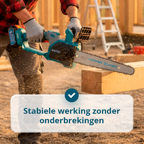 De KS MCS20V-12 snoerloze mini-zaag (batterij en oplader niet inbegrepen) van het Duitse merk Könner & Söhnen combineert kracht, mobiliteit en comfort. De borstelloze motor met 5 jaar garantie biedt hoge prestaties en duurzaamheid, terwijl de 20V batterij snoerloze werking mogelijk maakt. Met een kettingsnelheid van 10 m/s en een geleiderail van 12″ (30 cm) is het perfect voor het snoeien van takken, het voorbereiden van brandhout en timmerwerk. Het uitgebalanceerde ontwerp, de lichte behuizing en de ergonomische ronde handgreep verminderen vermoeidheid tijdens gebruik. Dubbele bescherming, een veiligheidsknop en een riemlus zorgen voor veiligheid, terwijl het gereedschapsloze kettingspansysteem en de automatische smering het onderhoud vereenvoudigen.