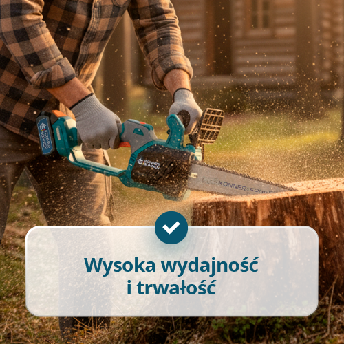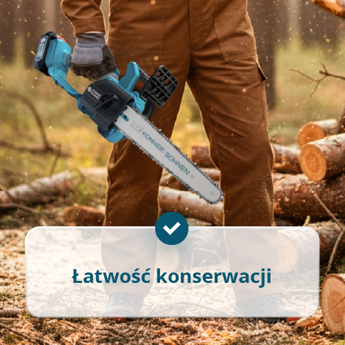 - Kompaktowa konstrukcja i niska waga – umożliwia wygodne trzymanie i łatwe manewrowanie piłą, pozwalając na pracę nawet jedną ręką, szczególnie w wąskich lub trudno dostępnych miejscach.