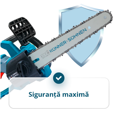 - Mecanism de tensionare a lanțului „fără unelte” – permite strângerea rapidă sau înlocuirea lanțului direct pe șantier, fără utilizarea șurubelnițelor sau cheilor.